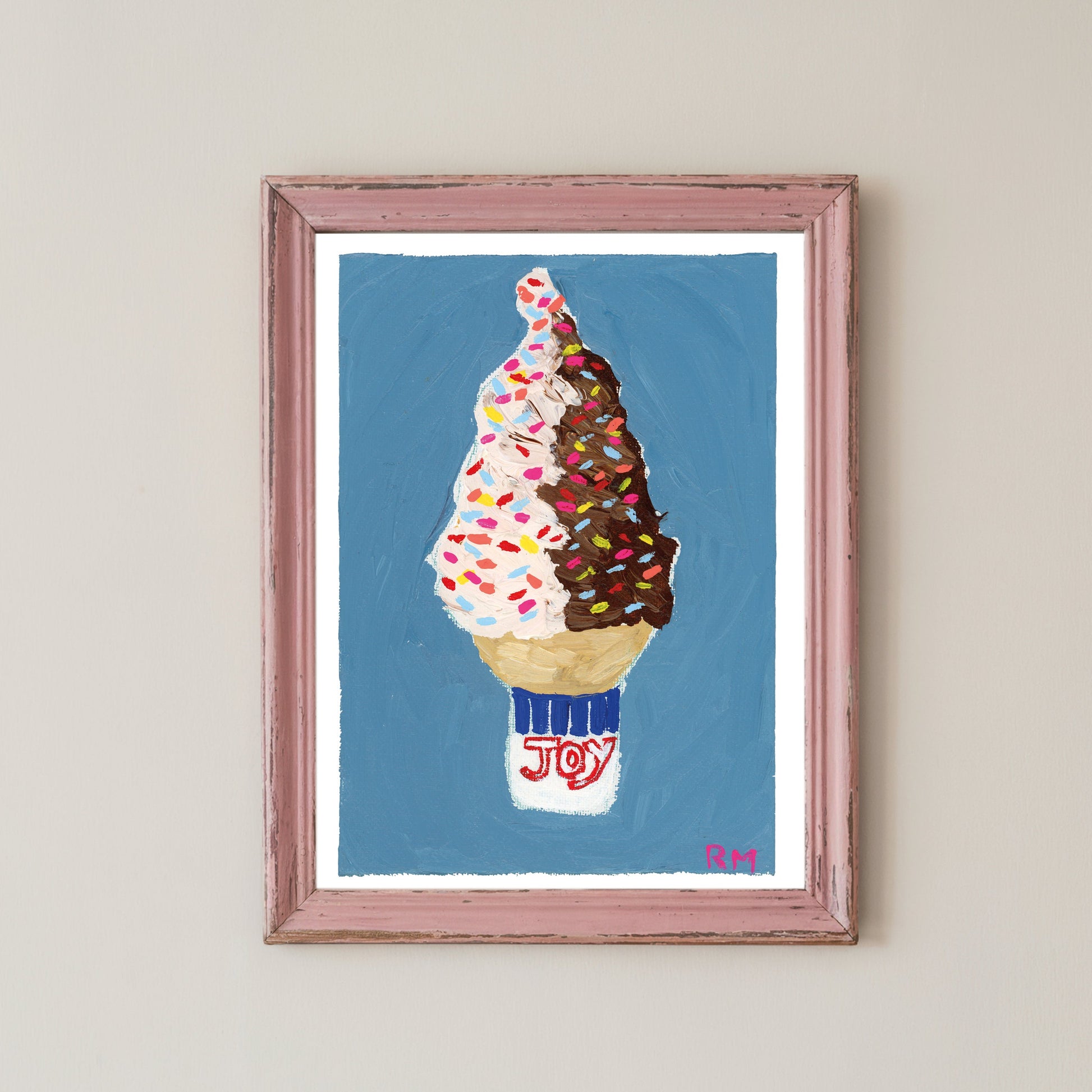 A celebration of the ice cream truck classic! Giclee fine art print of an original painting printed on slightly textured paper to bring JOY to your space.